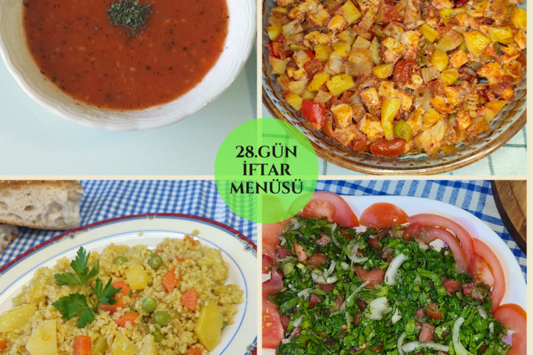 Ramazan’ın yirmi sekizinci gününde, sağlıklı ve doyurucu lezzetlerin bir araya geldiği, hafif bir iftar sofrası hazırladık. Bu menüde, geleneksel tarhana çorbası, fırında sebzeli tavuk, sağlıklı sebzeli bulgur pilavı ve bol yeşillikli salata yer alıyor. Her bir tarif, özenle seçilmiş malzemelerle hazırlanmış ve iftar sofralarınıza lezzet ve bereket katmak için idealdir.
