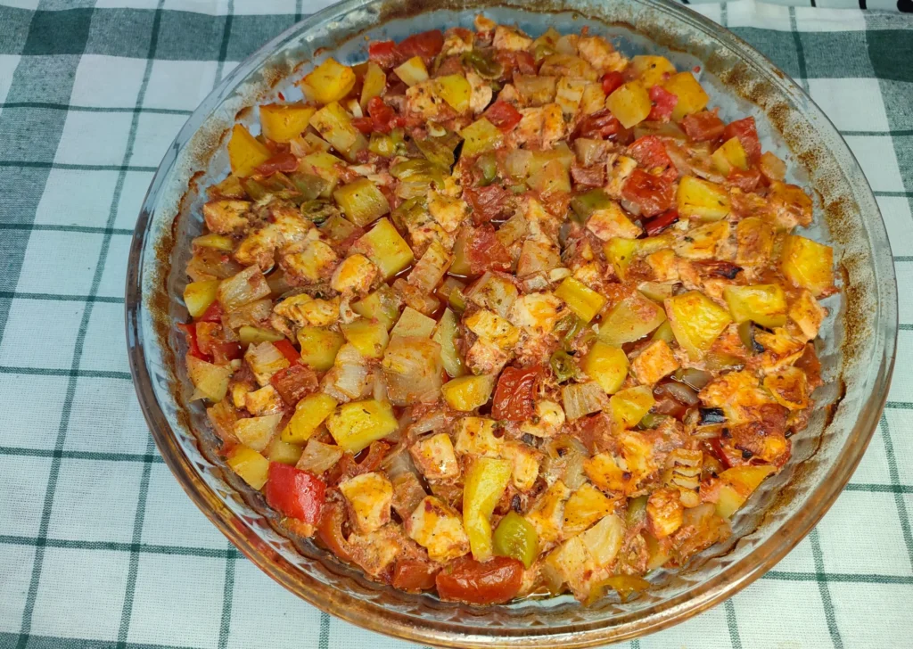 - Tavuk ve çeşitli sebzelerin fırında pişirilmesiyle hazırlanan bu yemek, iftar sofralarına hafif ve lezzetli bir ana yemek alternatifi sunar. Fırında pişirme yöntemi, yemeğin besin değerlerini koruyarak sağlıklı bir öğün sunar.