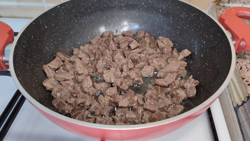 * Kuşbaşı doğranmış etleri düdüklü tencereye alın ve 2 su bardağı su ekleyip 15 dakika pişirin. Bu, etlerin daha yumuşak olmasını sağlar. Dilerseniz bu adımı atlayıp etleri doğrudan pilav tenceresinde de pişirebilirsiniz. Pişen etlerin suyunu süzüp bir kenara ayırın.